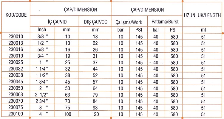 Hortumlar: TS745 TİP 1 TSE Markalıdır.