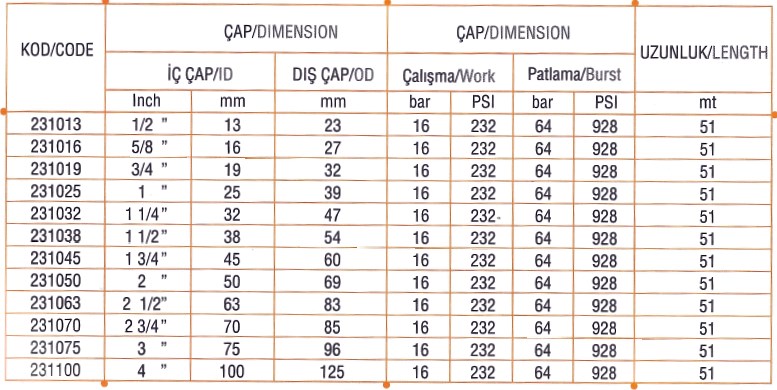 Kulllanma Yeri: Yüksek Basınçlı Hava Naklinde Özellikle Maden Ocaklarında